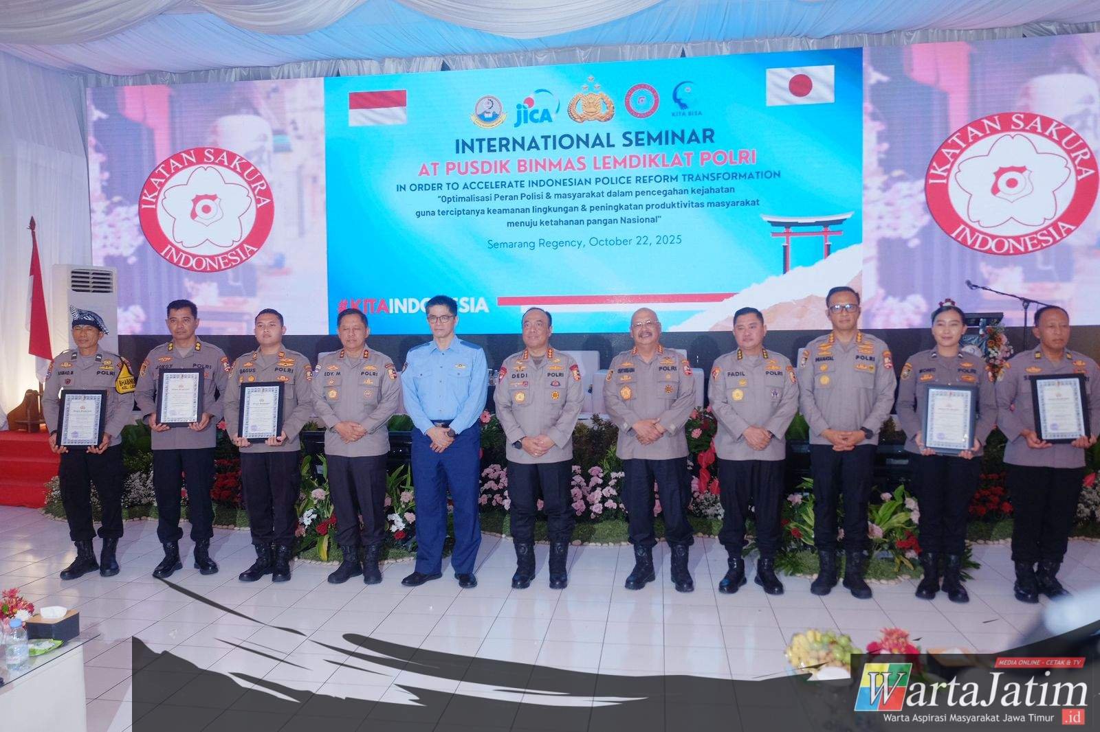 Penghargaan tersebut diserahkan oleh Wakapolri, Komjen Pol Prof. Dr. Dedi Prasetyo dalam Seminar Internasional yang digelar di Gedung Aula Ragil Poejono Pusdik Binmas Lemdiklat Polri, Banyubiru, Kabupaten Semarang, Rabu (22/10/2025) pekan lalu.