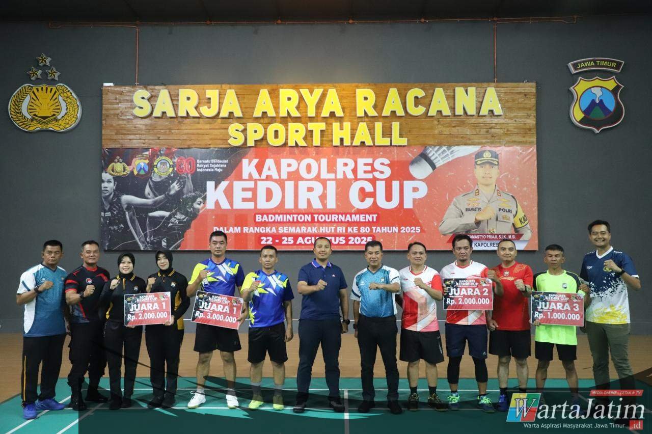 KEDIRI – Wartajatim.id || Gelaran Badminton Tournament Kapolres Kediri Cup 2025 resmi berakhir meriah di lapangan badminton Mapolres Kediri, Senin (25/8/2025).