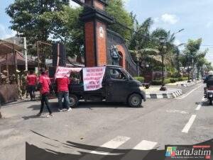 Puluhan massa aksi melakukan orasi di depan Kantor Pemerintah Kabupaten Kediri. Aksi tersebut merupakan respons atas perkembangan proses hukum yang tengah berjalan di Pengadilan Tindak Pidana Korupsi Surabaya, di mana dalam perkara itu disebutkan telah ada pihak yang dituntut oleh Jaksa Penuntut Umum.