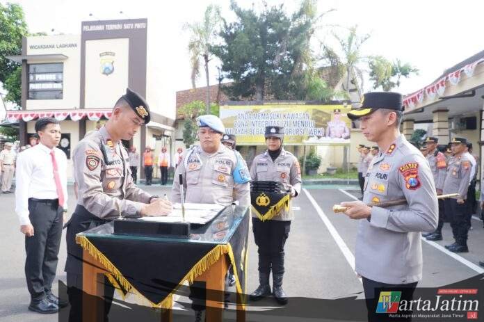 Kota Kediri – Wartajatim.id || Polres Kediri Kota menggelar Apel Bersama sekaligus Penandatanganan Pakta Integritas anggota pada Kamis pagi di Lapangan Apel Mako Polres Kediri Kota. Kegiatan ini berlangsung mulai pukul 08.00 WIB, diikuti oleh pejabat utama Polres, para Kapolsek jajaran, serta seluruh anggota dari berbagai satuan, (28/8).