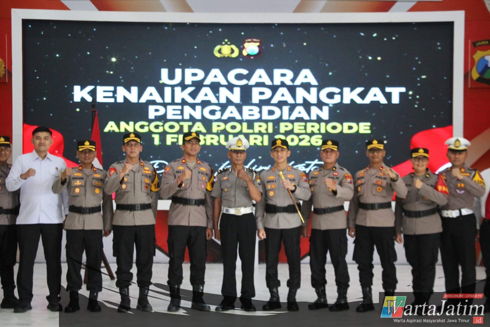Kediri Kota – Wartajatim.id || Suasana khidmat menyelimuti Gedung Rupatama Wicaksana Laghawa Polres Kediri Kota saat digelar Upacara Kenaikan Pangkat Pengabdian Periode 1 Februari 2026, Jumat (13/2/2026) pukul 14.00 WIB.