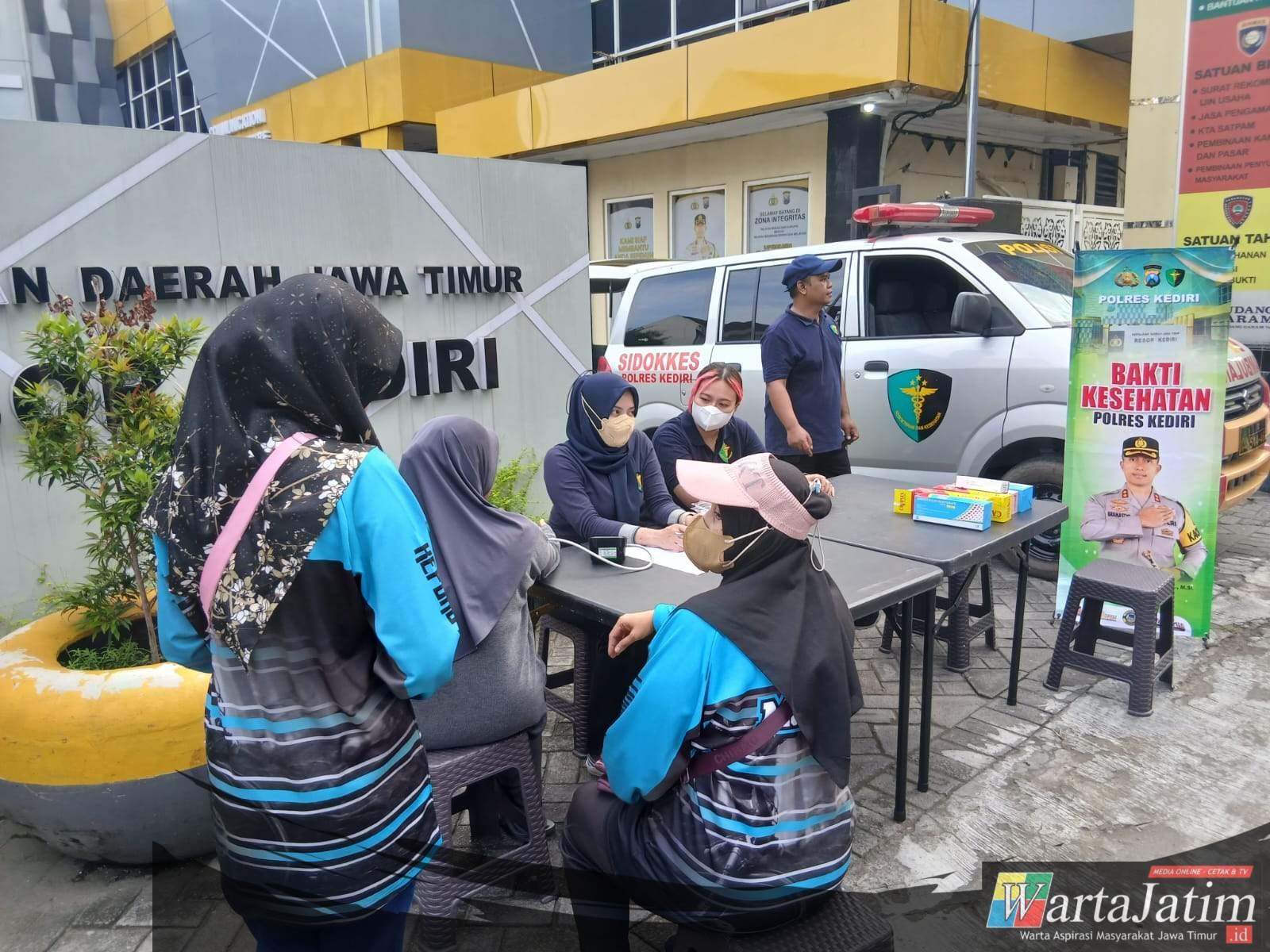Sejak pagi, tim Sidokkes Polres Kediri membuka layanan pemeriksaan dasar dan pengobatan bagi masyarakat yang melintas.