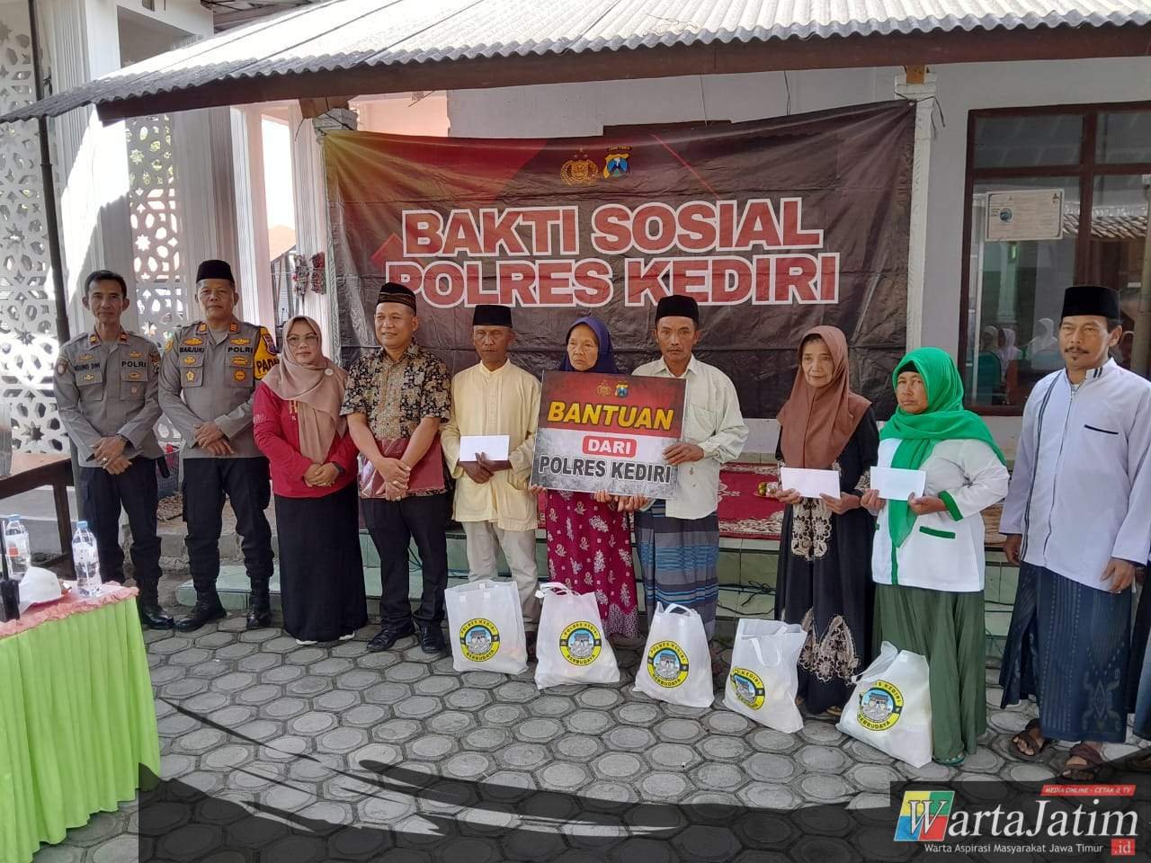Bantuan tersebut merupakan inisiatif Kapolres Kediri AKBP Bramastyo Priaji, S.H., S.I.K., M.Si., yang pelaksanaannya diwakili Kasat Resnarkoba Polres Kediri AKP Sujarno, S.H., M.H. Kegiatan turut dihadiri Kapolsek Puncu beserta anggota, perangkat desa, hingga masyarakat setempat.