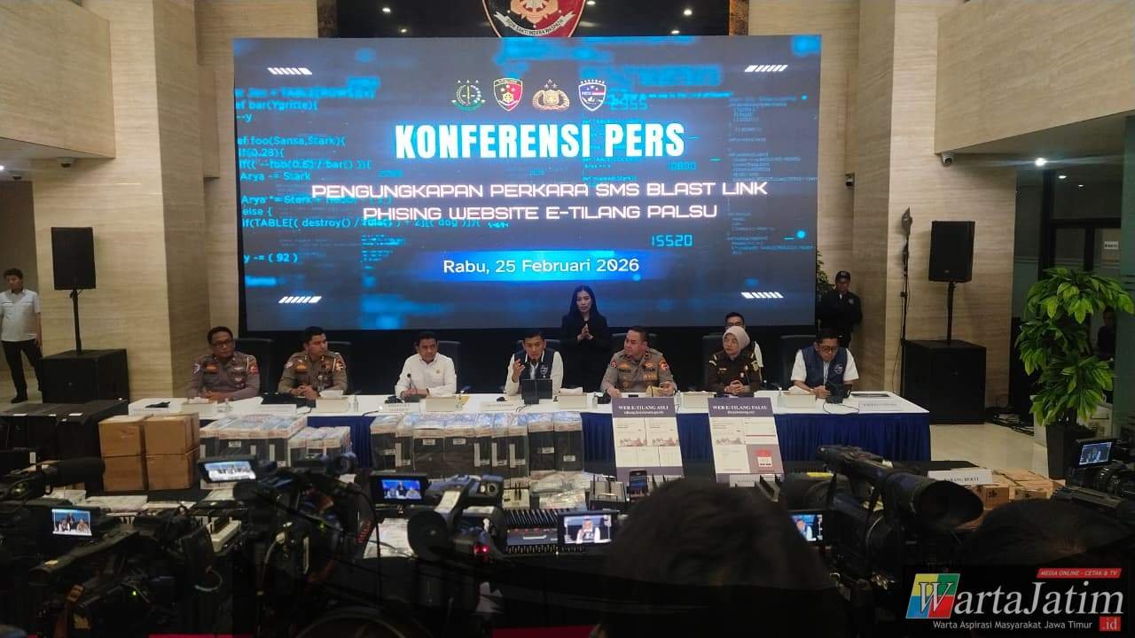 Jakarta – Wartajatim.id || Direktorat Tindak Pidana Siber Bareskrim Polri berhasil mengungkap kasus penipuan daring bermodus phishing yang menyamar sebagai situs resmi pembayaran e-tilang milik Kejaksaan Agung. Dalam aksinya, para pelaku membuat situs palsu yang tampilannya menyerupai laman resmi https://etilang.kejaksaan.go.id dan menyebarkan tautan jebakan melalui metode SMS blast kepada masyarakat.