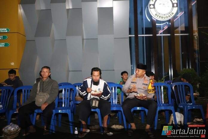 Dalam suasana hangat itu, Kapolres Kediri AKBP Bramastyo Priaji, S.H., S.I.K., M.Si. turut hadir dan berbaur langsung bersama masyarakat. Duduk sejajar, menyantap hidangan sahur bersama sembari berbincang ringan menjelang waktu imsak.