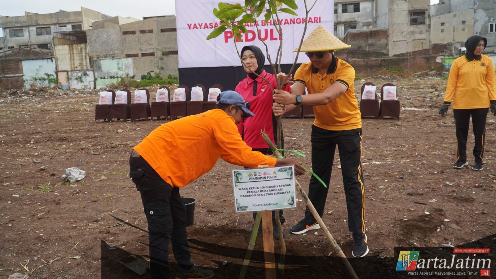 Kali ini dilakukan oleh pengurus Cabang Bhayangkari Kota Besar Surabaya dengan menggelar kegiatan penanaman pohon di lingkungan Asrama Polisi Koblen, Surabaya.