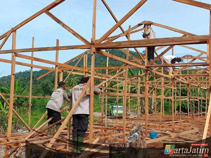 Capai 47 Unit, Pembangunan HuntarPadang – Wartajatim.id || Personel Satuan Brimob Polda Sumatera Barat terus menunjukkan komitmen Polri dalam mendukung pemulihan pascabencana. Pada Senin (5/1/2026), personel Sat Brimob Polda Sumbar yang dipimpin oleh IPTU Ridesmon melaksanakan pembangunan Hunian Sementara (Huntara) di Kecamatan Pauh, Kota Padang.