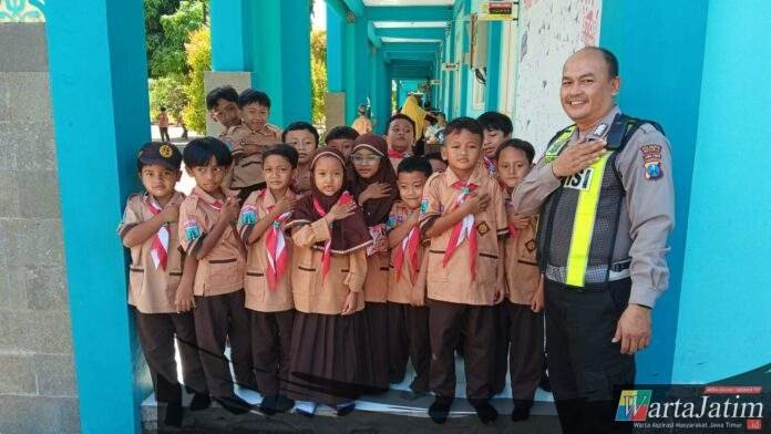 Dalam Rangka HUT Lalu Lintas, Polsek Krian Gelar Program “Polantas Menyapa” di SD Alkautsar