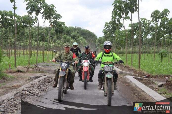 Didampingi jajaran perwira Satgas TMMD ke-127, Letkol Inf Dhavid Nur Hadiansyah, S.Sos M.A.P menyusuri lokasi sasaran dengan mengendarai sepeda motor trail.