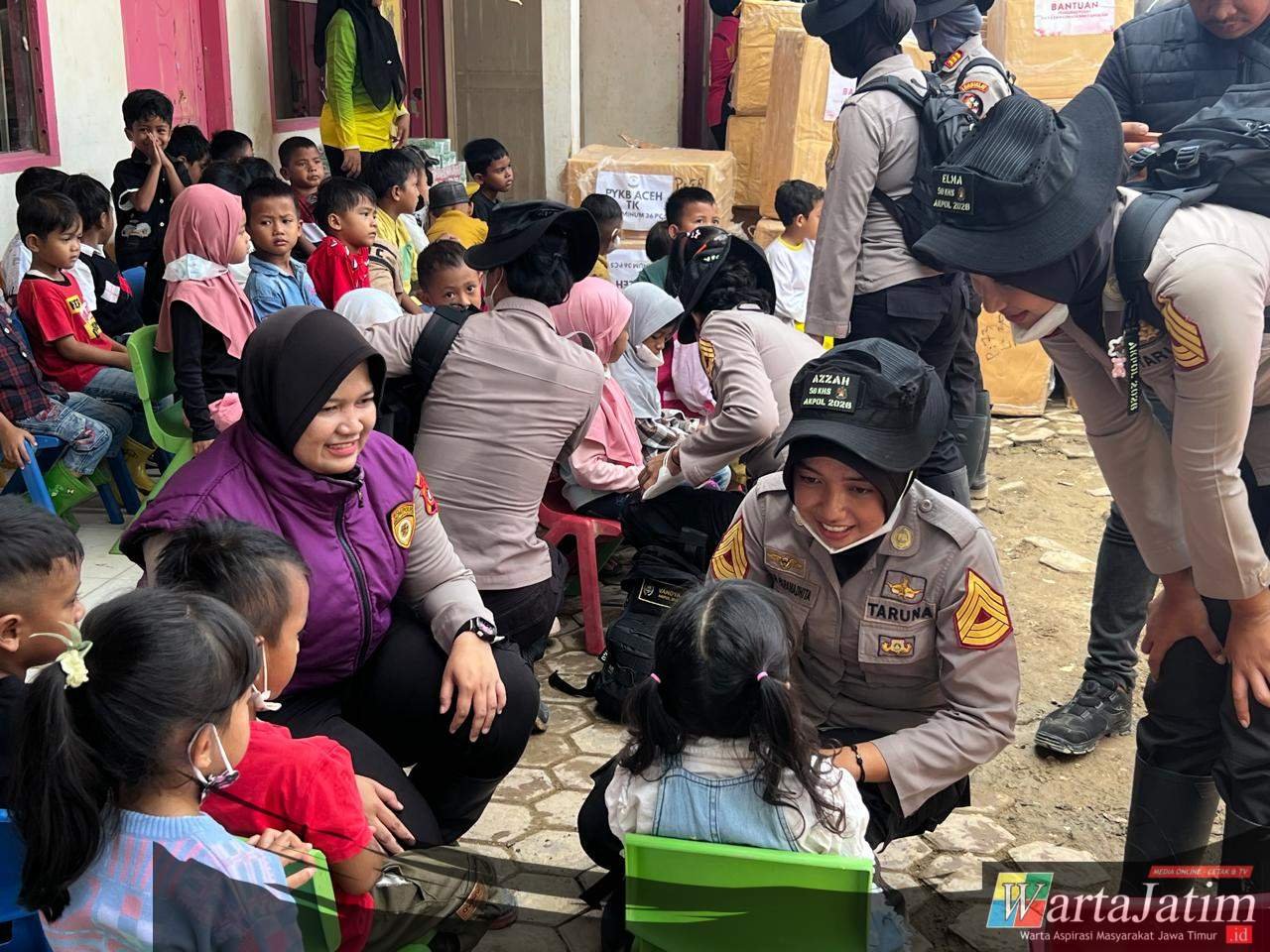 Aceh Tamiang — Wartajatim.id || Tanpa membuang waktu untuk beristirahat, sesaat setelah tiba di Aceh Tamiang, 9 Taruna dan Taruni Akademi Kepolisian (Akpol) didampingi Biro Psikologi SSDM Polri langsung turun ke lapangan melaksanakan kegiatan trauma healing bagi anak-anak korban bencana. Kegiatan ini merupakan bagian dari pengerahan 169 Taruna Akpol yang bertugas selama satu bulan penuh dalam Latihan Integrasi Taruna Wreda Nusantara (Latsitardus) 2026, untuk melaksanakan pelayanan terpadu pascabencana di Kabupaten Aceh Tamiang.