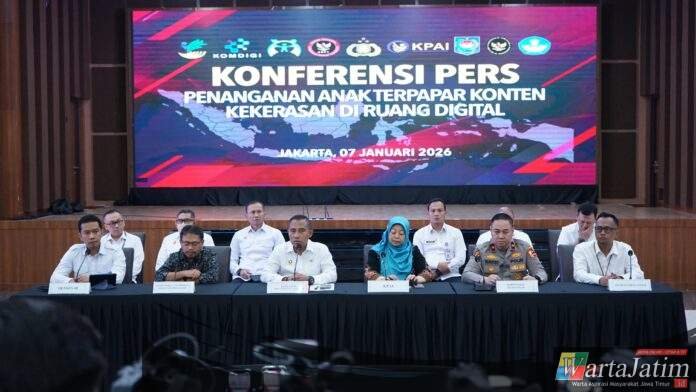 Jakarta — Wartajatim.id || Densus 88 AT Polri mengungkap temuan serius terkait paparan konten kekerasan dan ideologi ekstrem di ruang digital yang menyasar anak-anak dan remaja. Hal ini disampaikan dalam Konferensi Pers Penanganan Anak Terpapar Konten Kekerasan di Ruang Digital yang digelar di Gedung Awaloedin Djamin Bareskrim Polri, Jakarta, Rabu (7/1/2026).