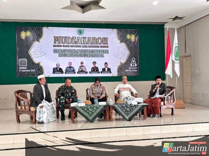 Cirebon – Wartajatim.id || Detasemen Khusus (Densus) 88 Antiteror Polri menjadi pembicara dalam kegiatan Mudzakaroh Majelis Ulama Indonesia (MUI) Kabupaten Cirebon, Sabtu (27/9/2025). Kegiatan ini bertujuan memperkuat peran ulama dalam mencegah penyebaran paham Intoleransi, Radikalisme, Ekstremisme, dan Terorisme (IRET) di tengah masyarakat.