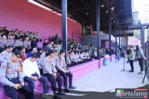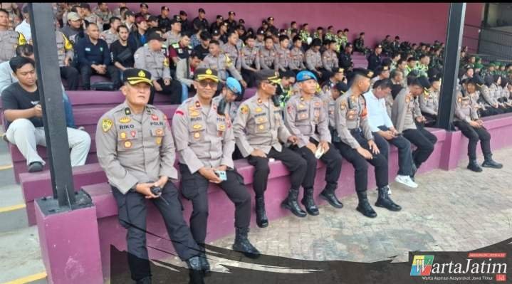 KEDIRI KOTA — Wartajatim.id || Aparat gabungan dari Polres Kediri Kota bersama TNI dan instansi terkait melaksanakan pengamanan pertandingan sepak bola BRI Super League musim 2025/2026 antara Persik Kediri melawan Persita Tangerang di Stadion Brawijaya, Minggu (19/4/2026).