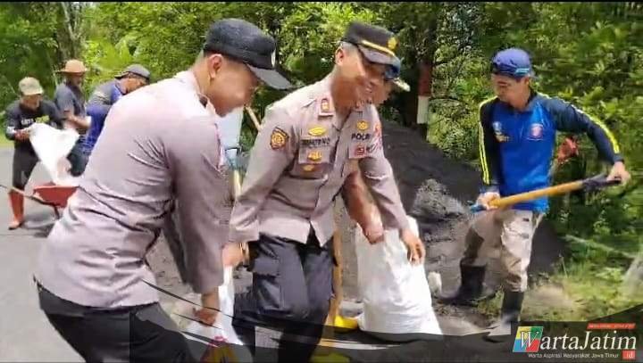 LUMAJANG – Wartajatim.id || Polres Lumajang Polda Jawa Timur melalui Polsek Tempursari bersama warga setempat gotong royong tangani dampak longsor di lokasi longsor jalur Kecamatan Tempursari menuju Pronojiwo, Kabupaten Lumajang, Rabu (4/3/26).