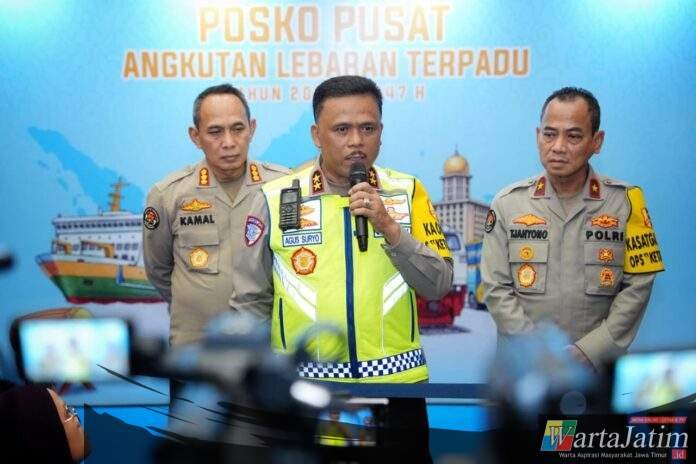Jakarta – Wartajatim.id || Kepala Korps Lalu Lintas (Kakorlantas) Polri Irjen Pol. Drs. Agus Suryonugroho S.H., M.Hum menghadiri Pembukaan Posko Pusat Angkutan Lebaran Tahun 2026 di Kantor Kementerian Perhubungan (Kemenhub), Jumat (13/3).