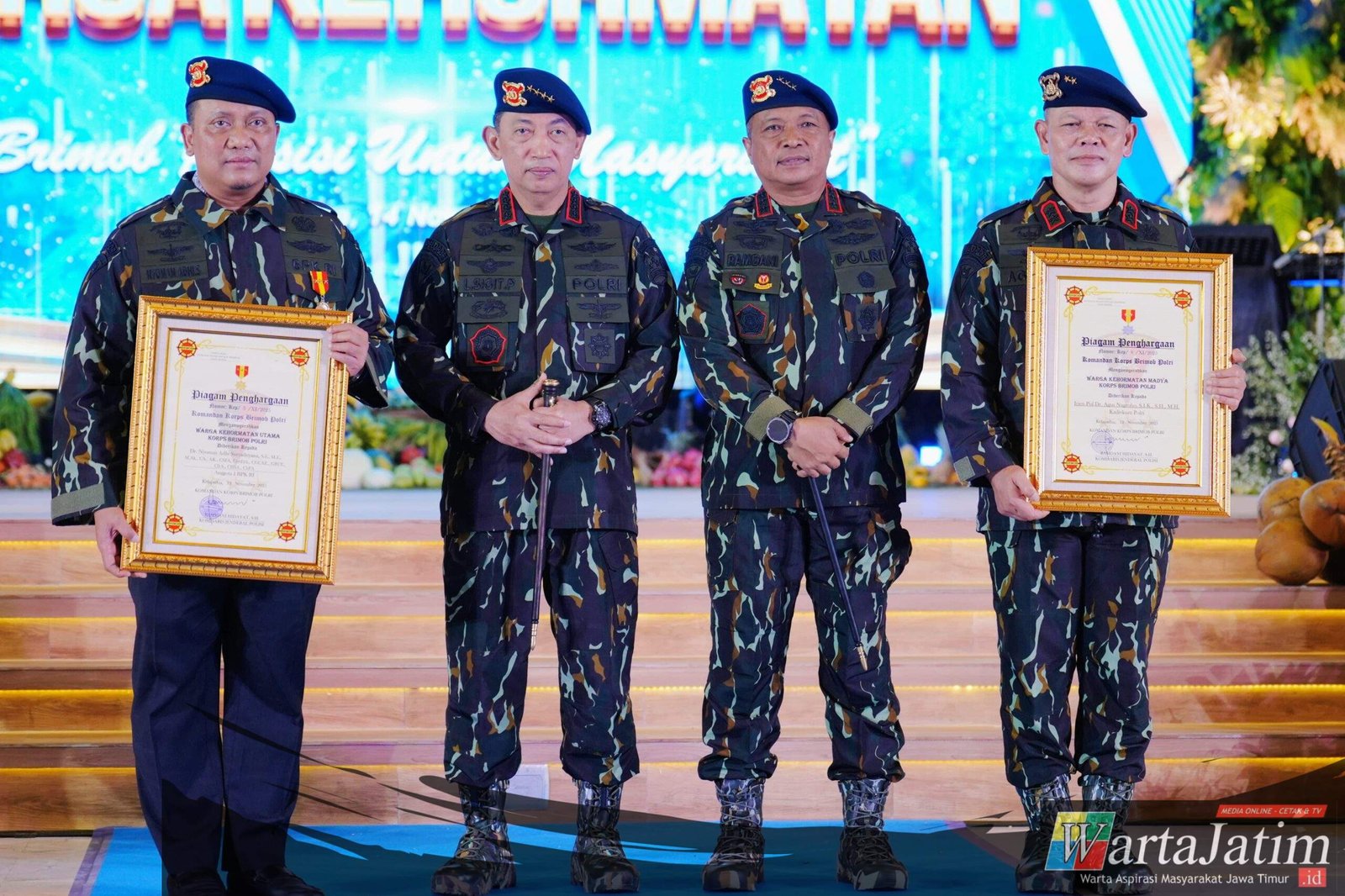 Depok – Wartajatim.id || Kapolri Jenderal Polisi Drs. Listyo Sigit Prabowo, M.Si., mengapresiasi kontribusi besar Korps Brimob Polri dalam mendukung berbagai program prioritas pemerintah, terutama di bidang ketahanan pangan dan pembangunan infrastruktur konversi energi bersih. Hal tersebut disampaikan Kapolri saat memberikan sambutan pada acara Syukuran HUT ke-80 Korps Brimob Polri yang digelar di Gedung Satya Haprabu, Korbrimob Polri, Depok, Jumat (14/11/2025).