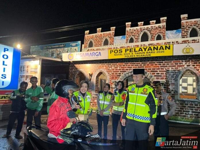 Nganjuk – Wartajatim.id || Suasana penuh kehangatan terasa di Pos 12.0 Pujahito Satlantas Polres Nganjuk saat jajaran Satlantas menggelar sahur bersama komunitas ojek pangkalan dan ojek online (ojol), Senin (23/2/2026). Kegiatan ini merupakan bagian dari program Polantas Menyapa, yang bertujuan mempererat silaturahmi sekaligus menyampaikan pesan keselamatan berlalu lintas secara humanis.