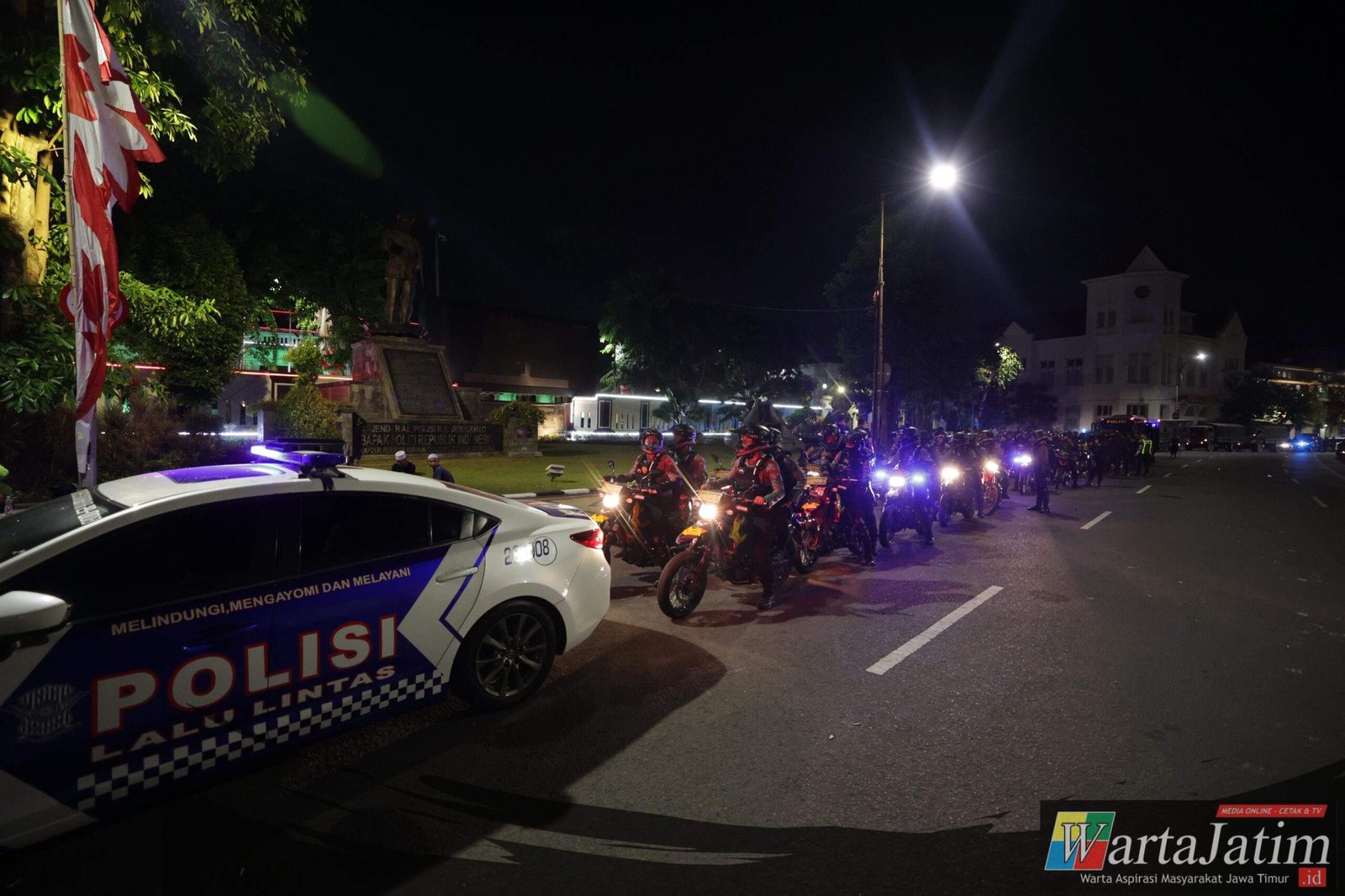 Dalam patroli skala besar Polda Jatim kali ini petugas gabungan Polri dan TNI menyisir sejumlah titik vital di Surabaya, diantaranya Jalan Ahmad Yani, Raya Darmo, Urip Sumoharjo, Basuki Rahmat, Gubernur Suryo, Yos Sudarso, Genteng, Undaan, Tugu Pahlawan, Indrapura, Rajawali, hingga kawasan Diponegoro.