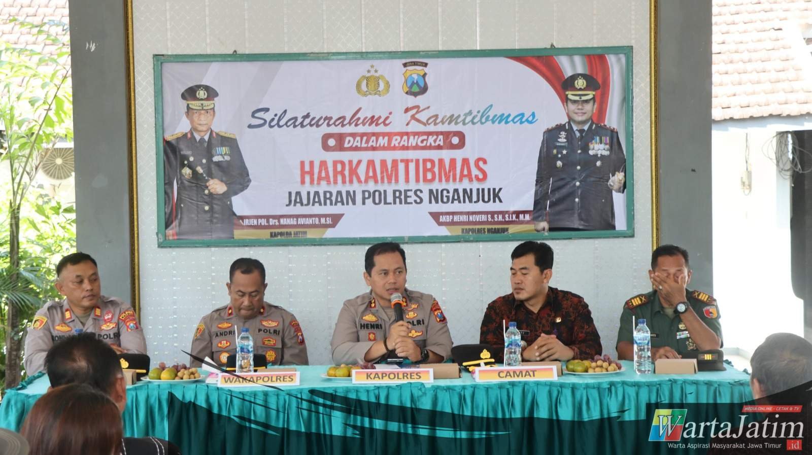 Nganjuk – Wartajatim.id || Kapolres Nganjuk AKBP Henri Noveri Santoso, S.H., S.I.K., M.M. menggelar kegiatan Silaturahmi Kamtibmas bersama Forkopimcam Gondang, tokoh agama, tokoh masyarakat, serta perwakilan organisasi kemasyarakatan guna membahas potensi gangguan keamanan dan ketertiban masyarakat, Kamis (31/7/2025).
