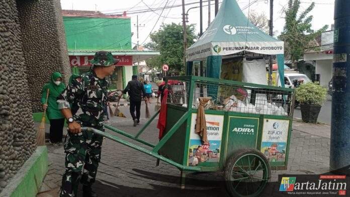 KEDIRI KOTA – Wartajatim.id || Koramil 0809/02 Pesantren Kodim Kediri beserta Persit dan anggota menggelar karya bakti teritorial prima dengan membersihkan areal pasar Pahing Joyoboyo di Kelurahan Singonegaran, Kecamatan Pesantren,Kota Kediri. Jumat (19/9/2025).
