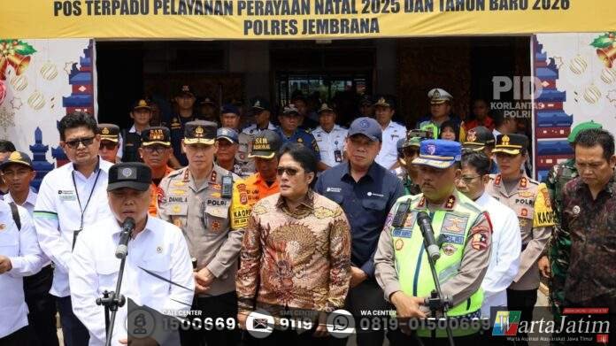 Bali – Wartajatim.id || Kakorlantas Polri Agus Suryonugroho bersama Menteri Perhubungan Dudy Purwagandhi meninjau Pelabuhan Gilimanuk, Senin (29/12/2025), guna memastikan kesiapan pengamanan dan pelayanan angkutan selama Operasi Natal 2025 dan Tahun Baru 2026.