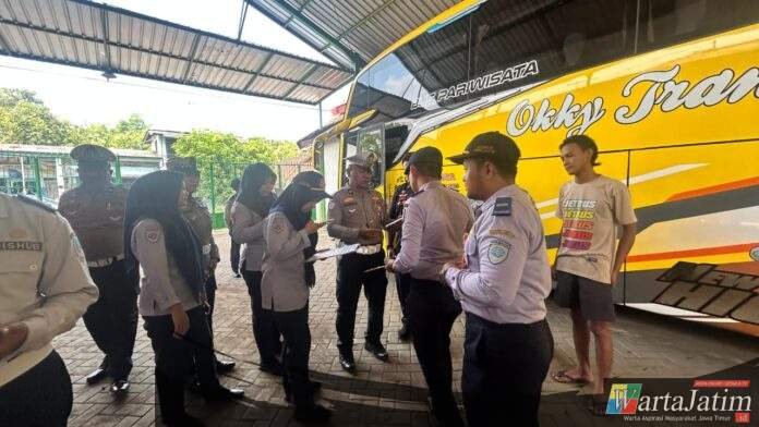 NGANJUK – Wartajatim.id || Menjelang dimulainya Operasi Lilin Semeru 2025, Satuan Lalu Lintas (Satlantas) Polres Nganjuk berkolaborasi dengan Dinas Perhubungan (Dishub) Kabupaten Nganjuk dan UPT Pengujian Kendaraan Bermotor (KIR) Provinsi Jawa Timur, melaksanakan inspeksi keselamatan kendaraan atau ramp check gabungan di sejumlah Perusahaan Otobus (PO) lokal.
