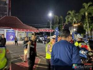 Kediri Kota – Wartajatim.id || Polres Kediri Kota bersama Satuan Lalu Lintas (Satlantas),Sat Samapta (Samapta) dan beberapa satuan fungsi lainya serta dari unsur TNI Sub Denpom V/2-2 dan juga Dishub Kota Kediri terus memberikan teguran secara humanis terhadap pelanggar lalu lintas, meski ada juga tindakan tilang manual dalam giat Operasi Cipta Kondisi yang di gelar pada Sabtu (12/7/2025) pukul 23.00 WIB hingga Minggu dinihari demi keamanan dan kenyamanan sesama pengguna jalan yang melintas Wilkum Polres Kediri Kota.
