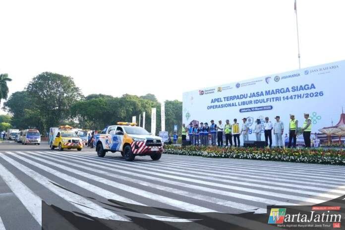 Jakarta – Wartajatim.id || Bentuk sinergi dan kolaborasi lintas sektoral, Kepala Korps Lalu Lintas (Kakorlantas) Polri Irjen Pol Drs. Agus Suryonugroho, S.H., M.Hum., menghadiri Apel Terpadu Jasa Marga Siaga Operasional Libur Hari Raya Idul Fitri 1447 H/2026 di TMII, Selasa (10/3). Apel ini menjadi bagian dari persiapan menghadapi arus mudik dan balik dalam rangka pelaksanaan Operasi Ketupat 2026.