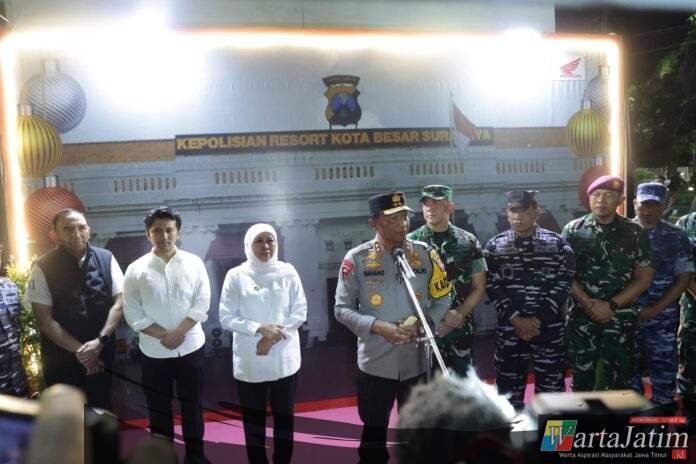 SURABAYA – Wartajatim.id || Menjelang pergantian Tahun Baru 2026, Kapolda Jawa Timur Irjen Pol Nanang Avianto bersama jajaran Forum Koordinasi Pimpinan Daerah (Forkopimda) Provinsi Jawa Timur melakukan pemantauan langsung di sejumlah titik pengamanan di Kota Surabaya, Rabu (31/12/2025) malam.