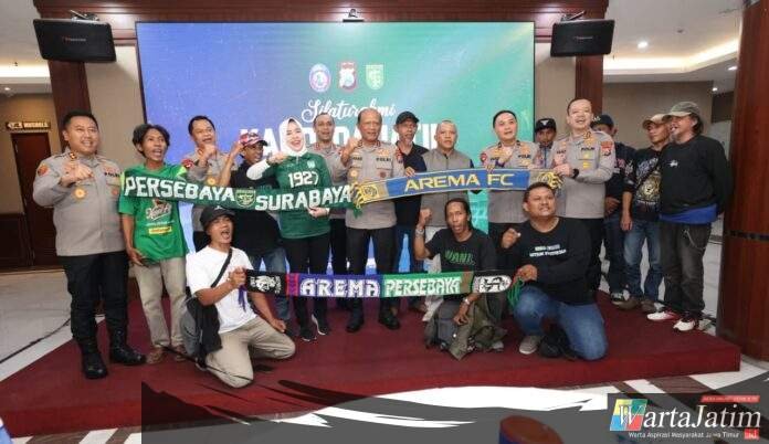 SURABAYA – Wartajatim.id || Upaya rekonsiliasi suporter di Jawa Timur terus diperkuat. Kapolda Jawa Timur Irjen Pol Nanang Avianto mempertemukan perwakilan Aremania dan Bonek dalam audiensi di Mapolda Jatim, Rabu (8/4/2026), guna memastikan pertandingan Arema FC kontra Persebaya Surabaya berlangsung aman dan damai.