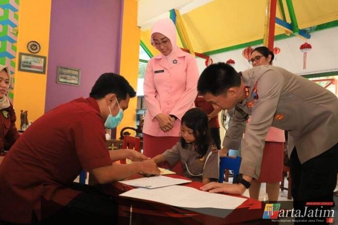 Kediri Kota – Wartajatim.id || Kapolres Kediri Kota AKBP Anggi Saputra Ibrahim, S.H., S.I.K., M.H., bersama Ketua Bhayangkari Cabang Kediri Kota Ny. Yani Anggi, meninjau langsung kegiatan pemeriksaan kesehatan murid dan guru TK Kemala Bhayangkari 42, Rabu (11/2/2026).