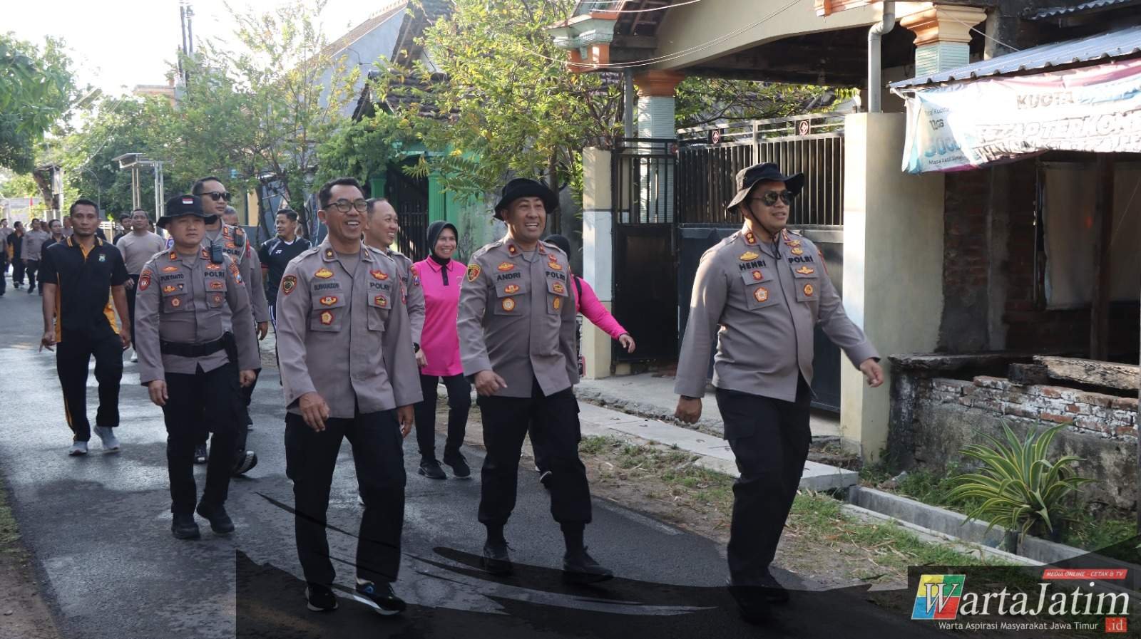 Nganjuk – Wartajatim.id || Kapolres Nganjuk AKBP Henri Noveri Santoso, S.H., S.I.K., M.M., bersama jajarannya melaksanakan kegiatan jalan sehat sejauh 5 kilometer di wilayah sekitar Kota Nganjuk pada Minggu (7/9/2025). Selain untuk menjaga kebugaran dan stress relieve, kegiatan ini juga menjadi ajang harkamtibmas dengan menyapa masyarakat yang tengah beraktivitas.