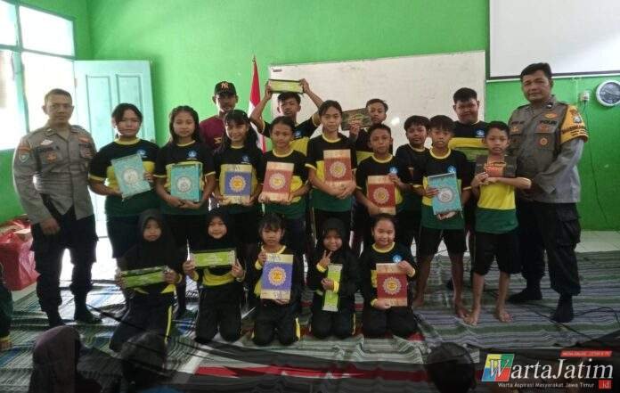 Nganjuk – Wartajatim.id || Dalam upaya menanamkan budaya tertib berlalu lintas sejak dini, Bhabinkamtibmas Polsek Jatikalen Aipda Setyoaji bersama Aipda Joni memberikan pembinaan dan penyuluhan kepada para pelajar SDN Perning, Kecamatan Jatikalen, Kabupaten Nganjuk, Jumat (10/10/2025).