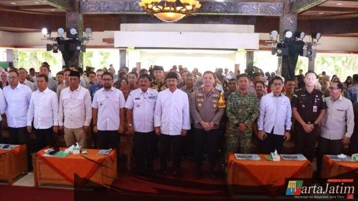 Nganjuk – Wartajatim.id || Kapolres Nganjuk AKBP Suria Miftah Irawan, S.H., S.I.K., M.I.K., menghadiri sekaligus memastikan pengamanan kunjungan Menteri Sosial RI Drs. H. Saifullah Yusuf dalam rangka Sosialisasi Sekolah Rakyat dan penguatan pemutakhiran serta pemanfaatan Data Tunggal Sosial dan Ekonomi Nasional (DTSEN) di Pendopo KRT Sosrokoesoemo Pemkab Nganjuk, Sabtu (28/2/2026).