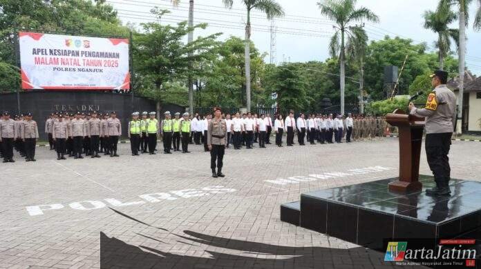 Kapolres Nganjuk Pimpin Apel Kesiapan Pengamanan Malam Natal 2025, Tekankan Kewaspadaan