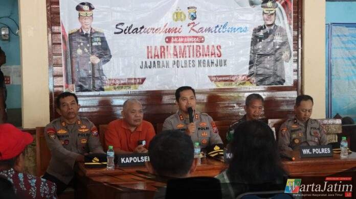 Nganjuk – Wartajatim.id || Kapolres Nganjuk AKBP Henri Noveri Santoso, S.H., S.I.K., M.M. melakukan pertemuan bersama Forkopimcam Sawahan, tokoh agama, tokoh masyarakat, serta unsur organisasi kemasyarakatan dalam kegiatan Silaturahmi Kamtibmas yang berlangsung di Kecamatan Sawahan, Jumat (1/8/2025).
