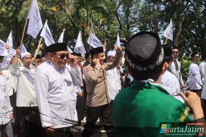 PROBOLINGGO – Wartajatim.id || Kepolisian Resor Probolinggo Polda menerjunkan ratusan personel untuk mengamankan jalannya aksi damai ribuan santri dan alumni pondok pesantren di halaman Kantor DPRD Kabupaten Probolinggo, Minggu (19/10/2025) kemarin.