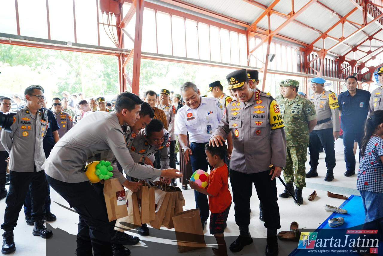 Kapolri juga menyempatkan diri menyapa para penumpang di ruang tunggu keberangkatan serta membagikan goodie bag sebagai bentuk perhatian dan dukungan kepada masyarakat yang akan melakukan perjalanan. Selain itu, Kapolri menyerahkan paket bantuan sosial secara simbolis kepada perwakilan petugas lintas sektor, meliputi unsur TNI, Polri, Dinas Perhubungan, tenaga kesehatan KAI, dan Polsuska.