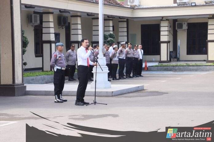 KEDIRI KOTA – Wartajatim.id || Apel pagi yang rutin digelar di Mako Polres Kediri Kota pada Senin (15/9/2025) dipimpin oleh Kasat Reskrim Polres Kediri Kota, AKP Cipto Dwi Leksana, S.Tr.K., S.I.K., M.H., Kegiatan apel pagi ini dihadiri oleh para Kabag, Kasat, Kapolsek, serta seluruh perwira dan anggota Polres Kediri Kota.