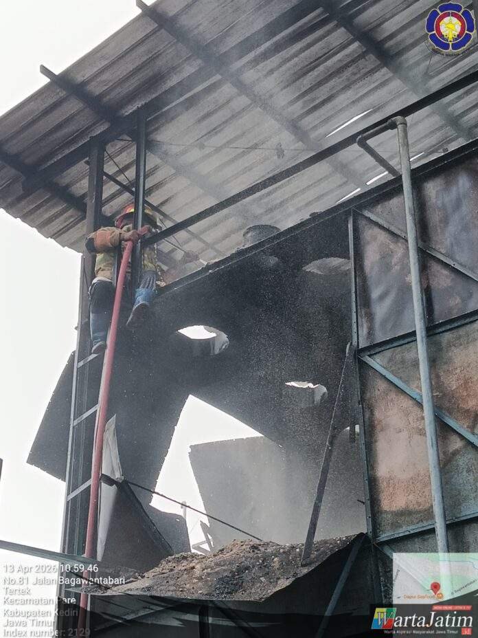 Kediri – Wartajatim.id || Kebakaran terjadi di area pabrik triplek yang berlokasi di Dusun Semanding, Desa Tertek, Kecamatan Pare, Kabupaten Kediri, pada Senin (13/4/2026) sekira pukul 10.45 WIB