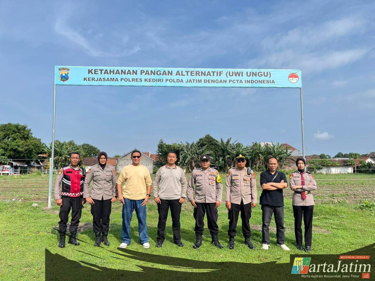 Penanaman uwi ungu ini merupakan kerja sama Polres Kediri bersama PCTA Indonesia sebagai bagian dari pemanfaatan lahan produktif untuk mendukung ketahanan pangan.