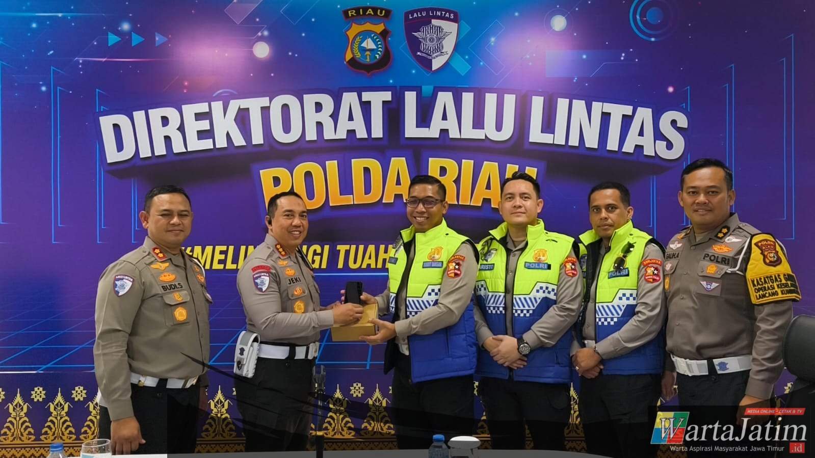 Sebagai bagian dari penguatan tersebut, Kasubdit Dakgar Ditgakkum Korlantas Polri melaksanakan penyerahan simbolis 15 unit ETLE Mobile Handheld kepada Ditlantas Polda Riau dalam rangka mendukung kesiapan penegakan hukum menjelang Operasi Ketupat.