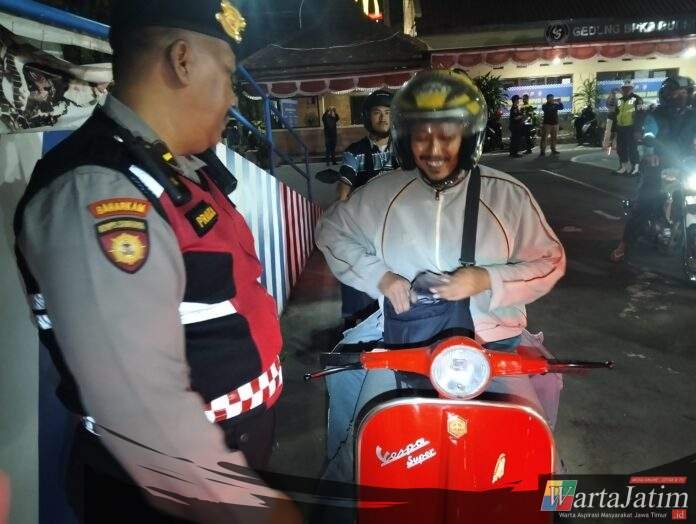 Kediri Kota – Wartajatim.id || Kepolisian Resor Kediri Kota Polda Jatim melaksanakan Kegiatan Rutin yang Ditingkatkan (KRYD) pada Sabtu (11/10/2025) malam hingga Minggu dini hari, di depan Mako Satlantas Polres Kediri Kota, Jalan Brawijaya.