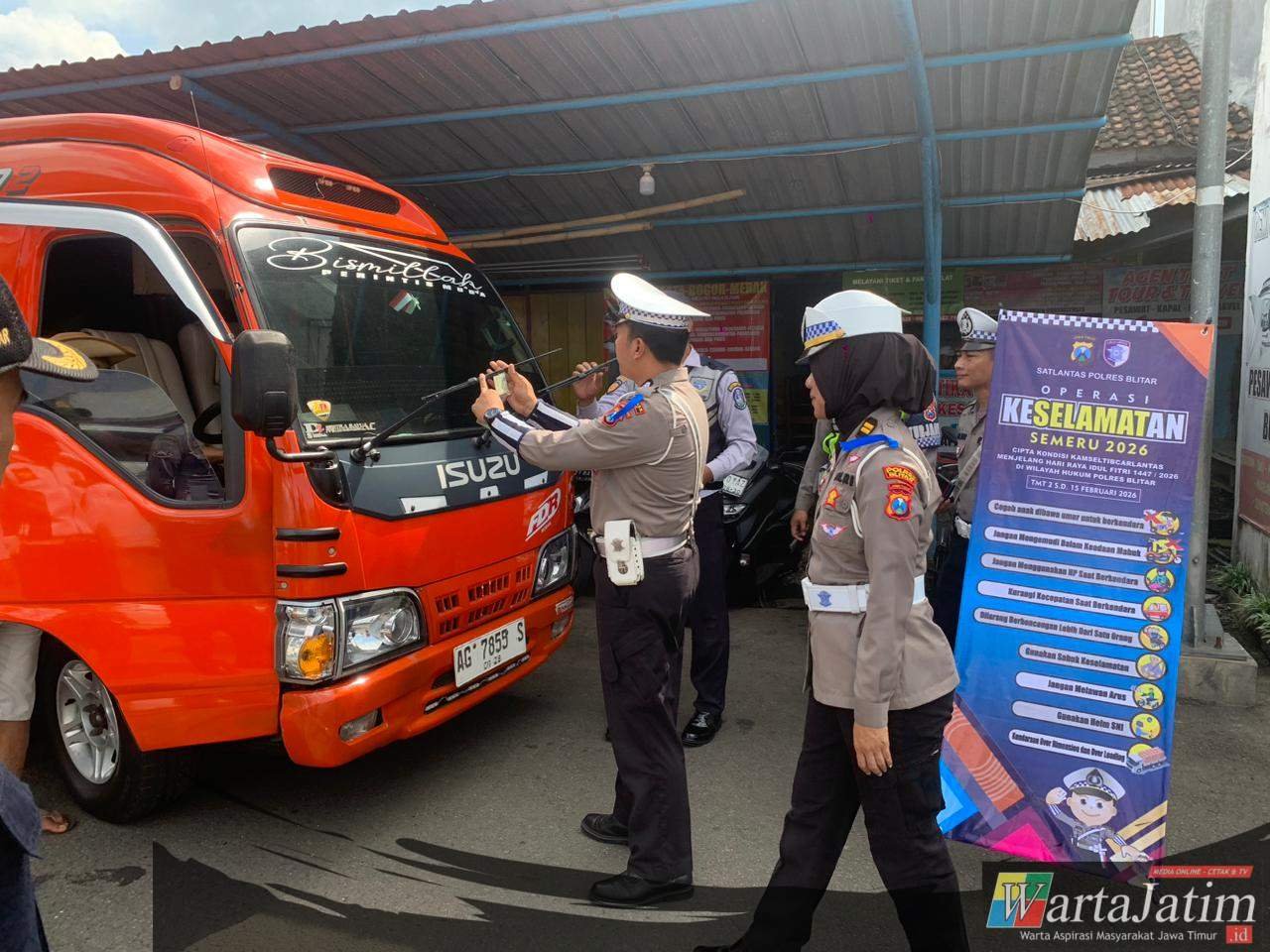 Dalam Operasi Keselamatan Semeru 2026, petugas menggelar aksi simpatik di kawasan Terminal Kesamben dengan memberikan edukasi langsung sekaligus kepada Sopir bus, penumpang dan pengguna jalan yang tertib.