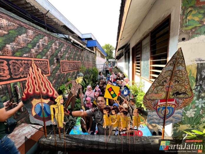 Lewat Pertunjukkan Wayang Kardus, Kapolsek Kediri Kota Ajak Anak-Anak Tertib Berlalu Lintas