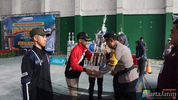 Nganjuk – Wartajatin.id || Upacara pembukaan Lomba Keterampilan Baris Berbaris (LKBB) Kapolres Nganjuk Cup ke-2 Tahun 2025 resmi digelar Satlantas Polres Nganjuk di GOR Begadung, Sabtu (22/11/2025).