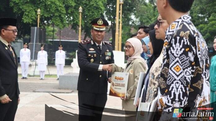 Nganjuk – Wartajatim.id || Kapolres Nganjuk AKBP Henri Noveri Santoso, S.H., S.I.K., M.M. yang diwakili Wakapolres KOMPOL Andria Diana Putra, S.E., M.H. menghadiri upacara bendera dalam rangka memperingati Hari Pahlawan 10 November 2025 yang digelar di Alun-Alun Nganjuk, Senin (10/11/2025).