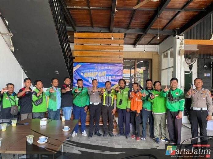 LAMONGAN – Wartajatim.id || Dalam upaya mempererat kemitraan dengan masyarakat sekaligus meningkatkan kesadaran tertib berlalu lintas, Satlantas Polres Lamongan Polda Jatim menggelar kegiatan Polantas Menyapa Warkop Ojol Kamtibmas, Rabu (11/02).