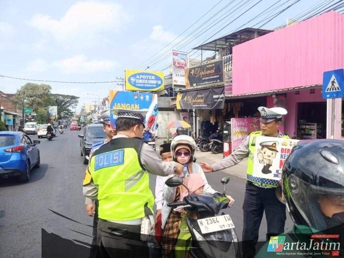 Dalam kegiatan itu sejumlah petugas gabungan dan Satlantas Polres Malang Polda jatim menyapa para pengendara dan menyampaikan pesan edukasi di sejumlah ruas jalan strategis di Kabupaten Malang.