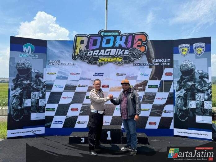 Kediri Kota – Wartajatim.id || Satlantas Polres Kediri Kota mengapresiasi kegiatan Rookie Drag Bike yang berlangsung di Kawasan Bandara Dhoho Kecamatan Grogol Kabupaten Kediri pada Minggu (23/11/2025). Kegiatan ini diikuti banyak peserta anak-anak muda berbagai daerah khususnya Kediri.